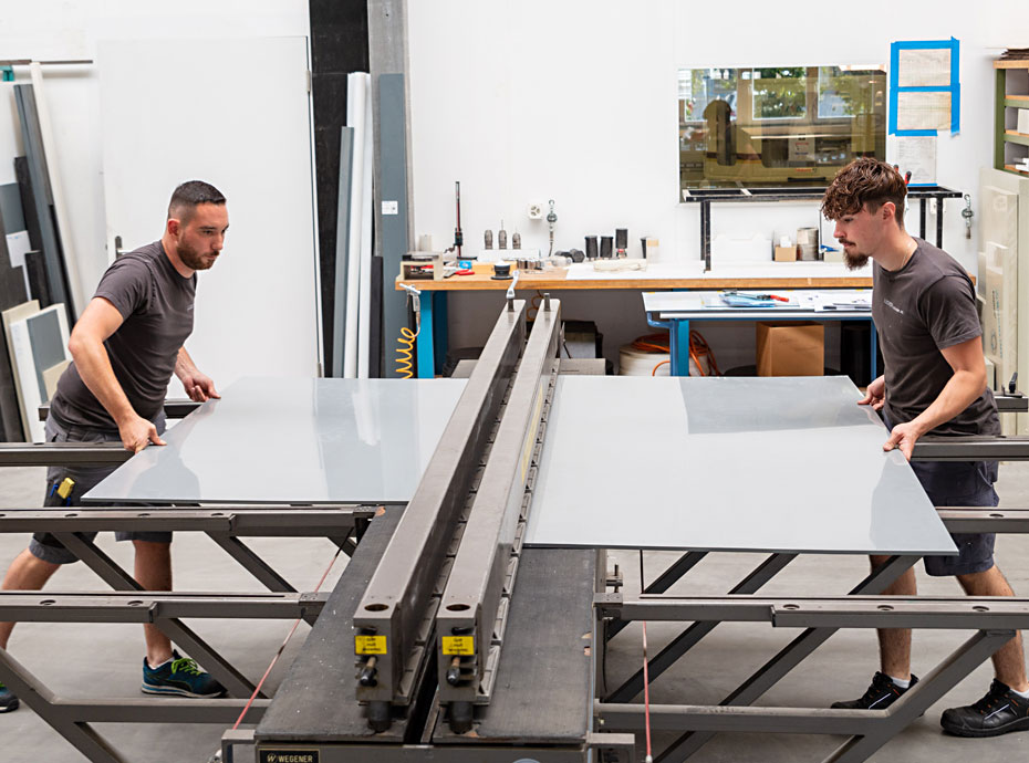In unserem vielfältigen Maschinenpark verarbeiten wir den gewählten Kunststoff in die von Ihnen gewünschte Form. Wir verfügen über eine Vielzahl von Platten, Profilen und Rohren bei uns an Lager.